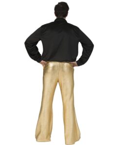 Turn up the glamour with these bold Gold Lamé Flared Trousers. Featuring a high-shine lamé finish and classic flared legs, these trousers are designed to make a statement — perfect for disco, glam rock, stage and show costumes.