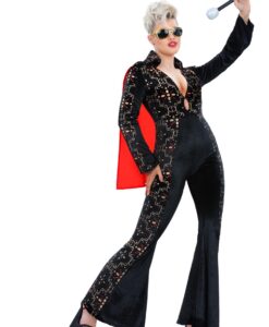 Channel the iconic stage glamour of Elvis Presley with this female version of the Black Rhinestone Elvis Costume. Inspired by legendary live-performance looks, this outfit delivers bold rock ’n’ roll style with a flattering feminine cut.