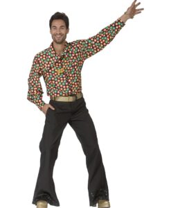 Complete the look with the Flower Family – Male Shirt, a bold flower-print shirt designed to coordinate perfectly with our Flower Family jumpsuits and outfits. Bright, cheerful and full of retro charm, this shirt is ideal for 60s / 70s themed events, festivals and family fancy dress.