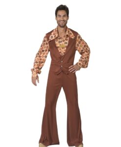 70s gent costume, fruity 70s outfit, brown flares costume, 1970s disco fancy dress, retro mens costume, couples 70s fancy dress UK