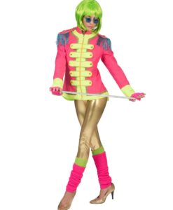 Stand out in true swinging sixties style with this eye-catching Ladies 60s Sgt Pepper–style Jacket in vibrant pink and green. Inspired by iconic military-style jackets of the 1960s, this bold colourway is perfect for both fashion-forward fancy dress and high-impact performances.