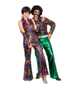 Bring colour, confidence and serious groove to the dancefloor with this show-stopping Rainbow Sparkle 70s Jumpsuit. Bursting with vibrant colour and classic retro flair, this jumpsuit is designed for 70s disco nights, Soul Train–style looks and high-energy retro parties.