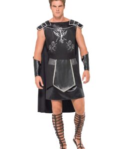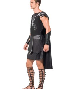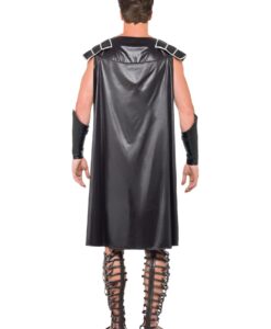 Male Dark Gladiator Costume – Black Roman Tunic with Cape & Arm Cuffs