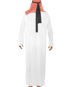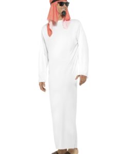 Create an instantly recognisable themed look with this Sheikh Costume, featuring a long white tunic and matching Arabian-style headdress. Simple, lightweight and effective, this outfit is designed for fancy dress, themed parties and stage use.