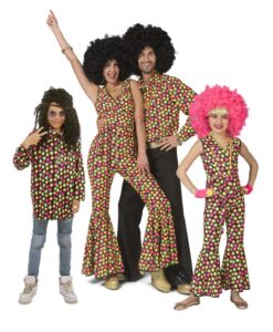 Complete the retro family look with the Flower Family – Girls Jumpsuit. Featuring a bright flower-print design, classic flared legs and a matching belt, this fun outfit captures the spirit of 60s / 70s flower power.