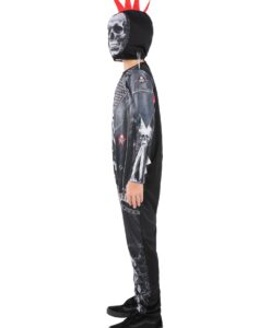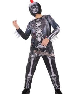 💀🎸 Kids Punk Skeleton Costume – All-In-One with Hooded Mask | Boys Fancy Dress