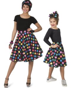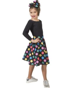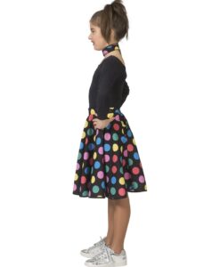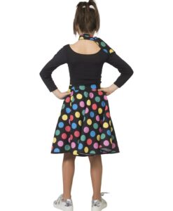 Let them dance and twirl in retro style with the Girls “Hottie Dottie” Rock & Roll Kit. This fun outfit includes a full circle skirt and a matching scarf, making it perfect for 1950s rock ’n’ roll themes — and just as great styled for a bright, playful 1980s look.