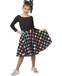 Let them dance and twirl in retro style with the Girls “Hottie Dottie” Rock & Roll Kit. This fun outfit includes a full circle skirt and a matching scarf, making it perfect for 1950s rock ’n’ roll themes — and just as great styled for a bright, playful 1980s look.