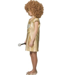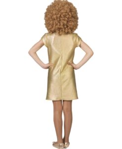 girls 70s disco dress, gold lamé dress kids, pop star costume girls, disco fancy dress children, 1970s costume kids UK