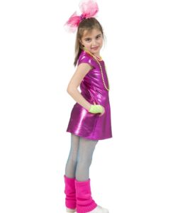 girls 80s disco dress, pink lamé dress kids, pop star costume girls, 80s fancy dress children, neon disco outfit kids UK