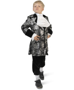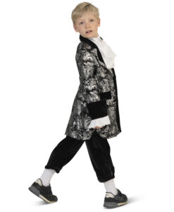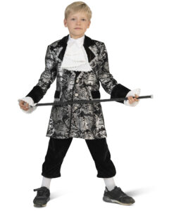 This elegant Kids Regency Prince Charming costume is a deluxe black and silver outfit, featuring traditional britches, a smart Regency-style jacket, and a classic jabot. A refined, theatrical look that’s perfect for school productions, history topics, World Book Day, fairy-tale themes, and stage performances.