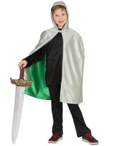 Knights and dragons are central figures in medieval legends and folklore, symbolising bravery, adventure, and imagination. Reversible cloaks were inspired by practical medieval garments and modern fantasy design, making this costume both educational and fun for children.
