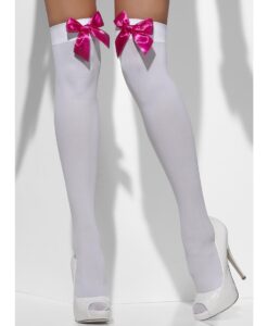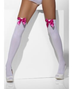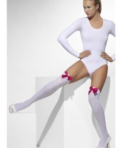 Fresh, fun and eye-catching, these White Opaque Hold-Up Stockings with Fuchsia Bow detailing add a bold splash of colour to a classic white leg. The bright fuchsia bows give them a playful, standout finish that works brilliantly for party, character and themed fancy dress.