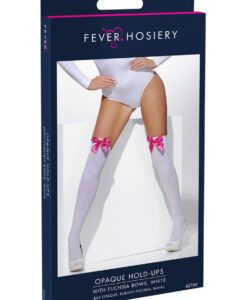 🤍💗 Opaque Hold-Ups – White with Fuchsia Bows | Fancy Dress & Costume Stockings