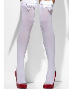 🤍 Opaque Hold-Ups – White with White Bows | Fancy Dress & Costume Stockings