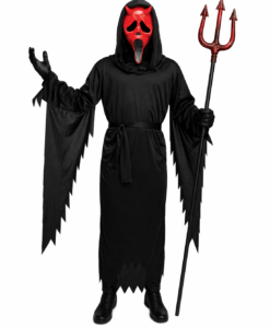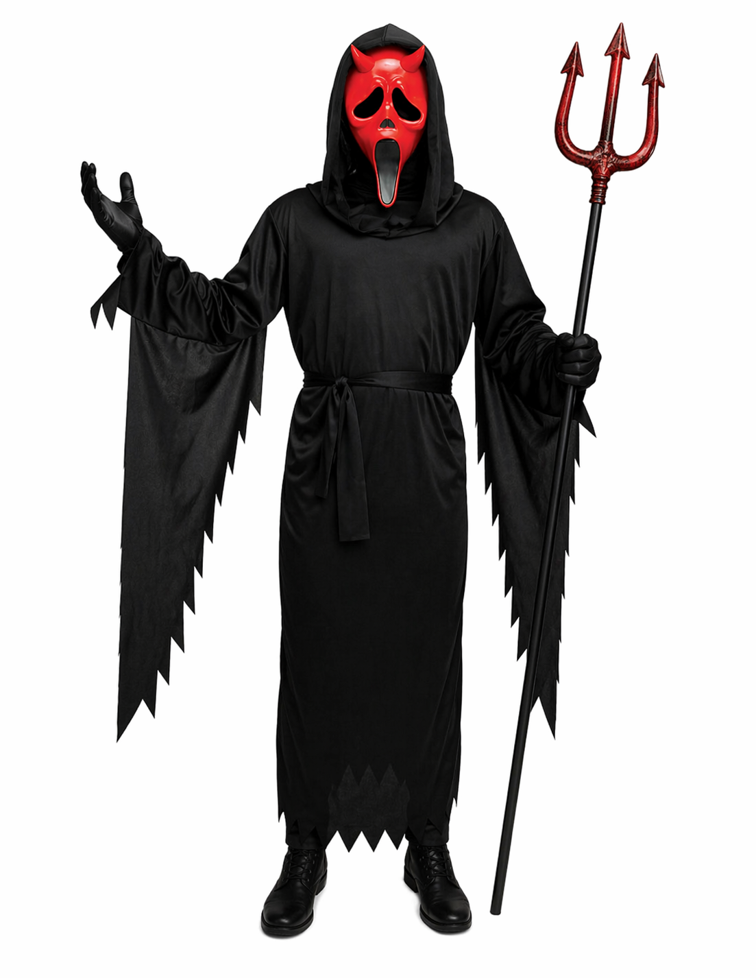Bring instant horror icon style to Halloween with this terrifying Devil Face Ghost Face outfit. Choose from the mask on its own or the complete costume with gown and belt.