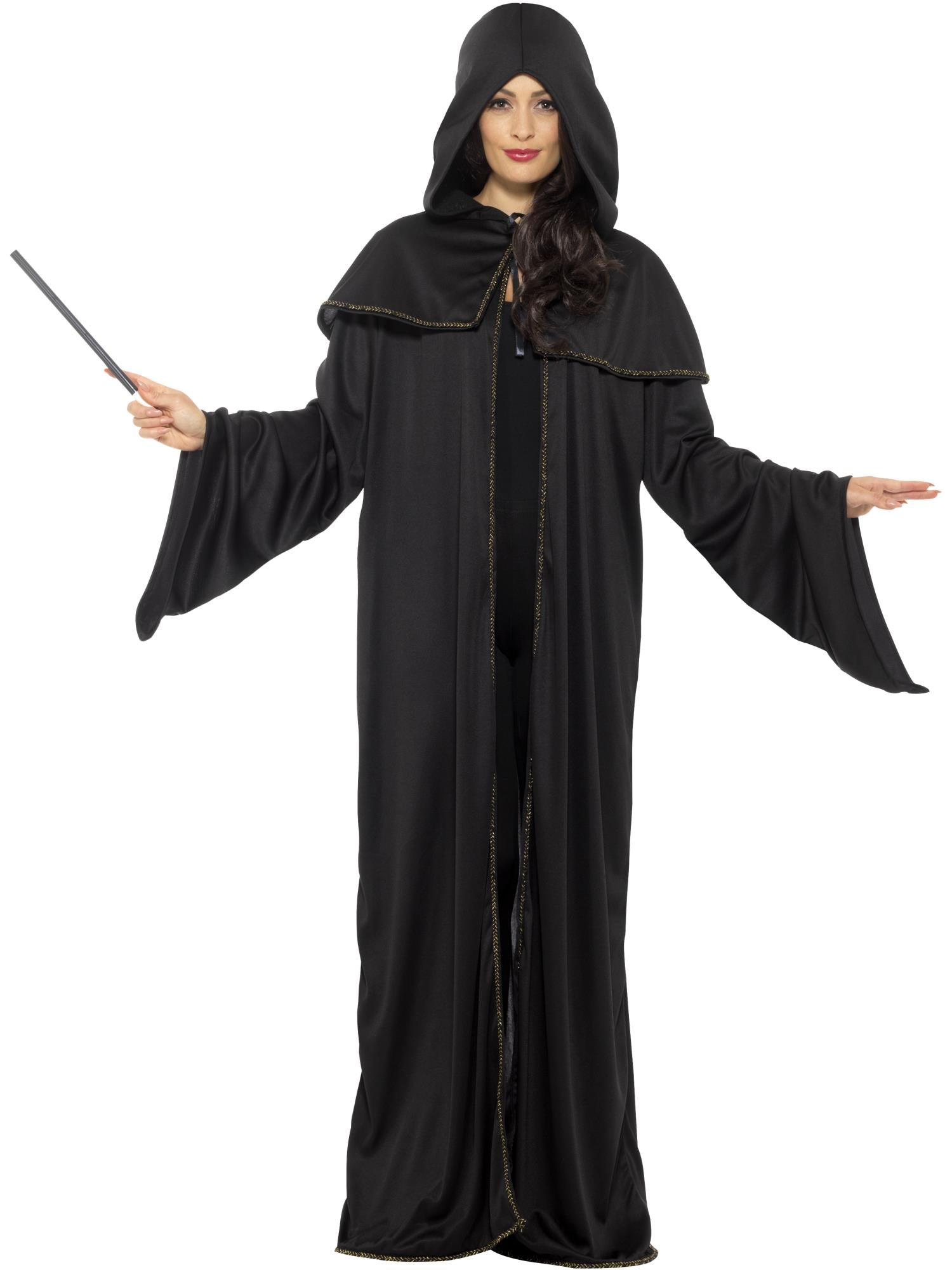 Wizard Cloak – Adult Black Hooded Cloak | One Size up to 48″ | Great Value