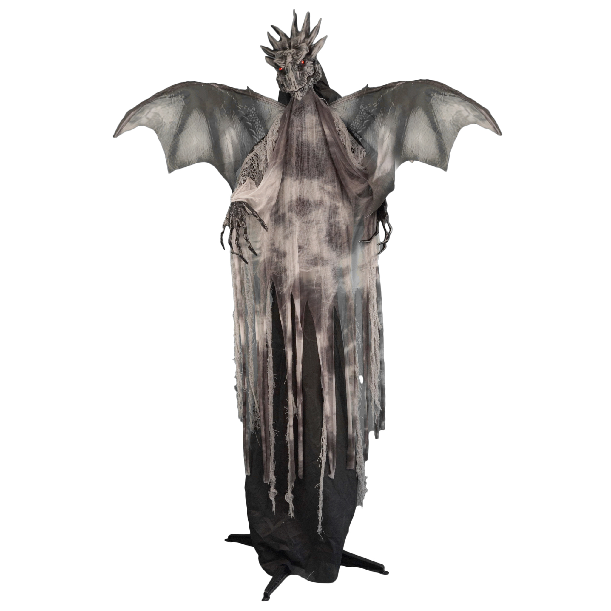 With detailed dragon styling, animated movement, roaring sound effects, and glowing light features, this impressive creature creates a powerful focal point. Its tall, slim profile makes it perfect for entrances, corners, windows, and themed setups where height and presence matter.
