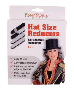 Handy hat size reducer set with 4 adhesive foam strips, designed to improve the fit of hats that are slightly too large. Ideal for costume hats, fancy dress, stage wear, and everyday hats. Easy to apply and remove without damage.