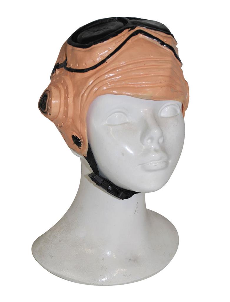 Classic Biggles-style aviator helmet made from moulded rubber and supplied with attached goggles. A fun, instantly recognisable look, also made popular on stage by Roy Chubby Brown. Ideal for aviator, comedy, vintage flying, stage shows, and fancy dress.