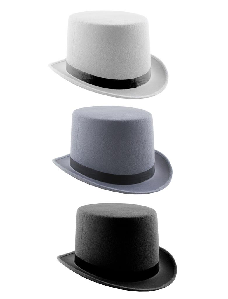 Classic felt top hat in a smart, traditional style. Perfect for magicians, Victorian looks, stage shows, formal costumes, fancy dress, and themed events. A versatile accessory that works across many characters and eras.
