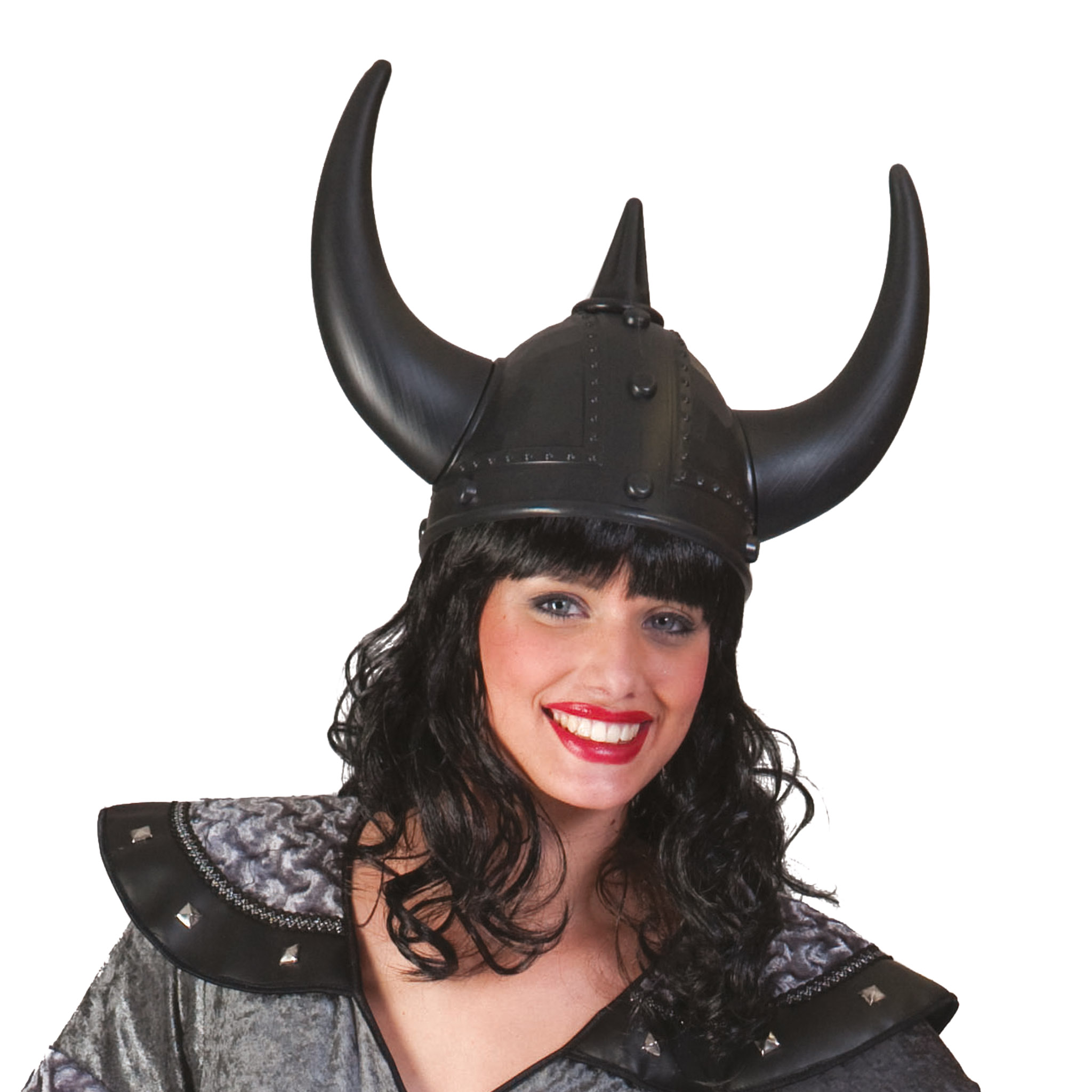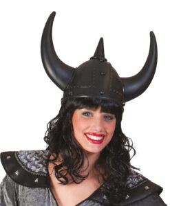 Classic black Viking helmet with attached horns, perfect for Vikings, Norse warriors, medieval themes, stage shows, and fancy dress. Lightweight and easy to wear, a bold finishing touch for any Viking outfit.