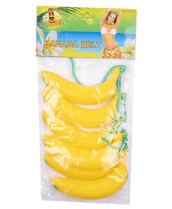Fun tropical banana belt featuring six bananas on a string. Perfect to wear over a Hawaiian grass skirt, or to tie around a gorilla suit for a playful, novelty look. A great way to add humour and character to your costume.