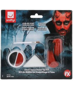 Create a fiery and dramatic devil look with the Smiffys Make-Up FX Devil Kit. This complete costume makeup set includes red and black water-activated (aqua) facepaints, devil horns, a sponge, and an applicator — everything you need for a bold transformation.