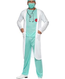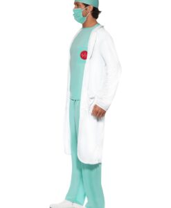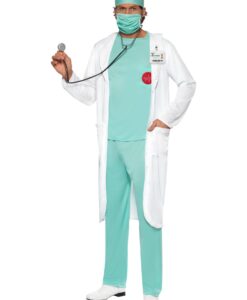 Smart, instantly recognisable and easy to wear, this Doctor Costume is a complete medical-style outfit ideal for fancy dress, role play and themed events. Featuring green scrubs, a doctor’s coat, hat, face mask and clear name tag, it delivers a convincing look straight out of the operating theatre.
