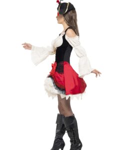 Add pirate boots, jewellery, a toy cutlass, or striped tights to personalise your glamorous pirate look.
