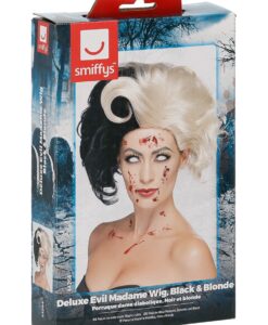 Make a wickedly stylish entrance with this Deluxe Evil Madame Wig, featuring the iconic black and blonde split colour for instant villain glamour. Bold, dramatic, and instantly recognisable, it’s perfect for costumes inspired by Cruella de Vil, as well as dark divas, fashion villains, and theatrical fancy dress.